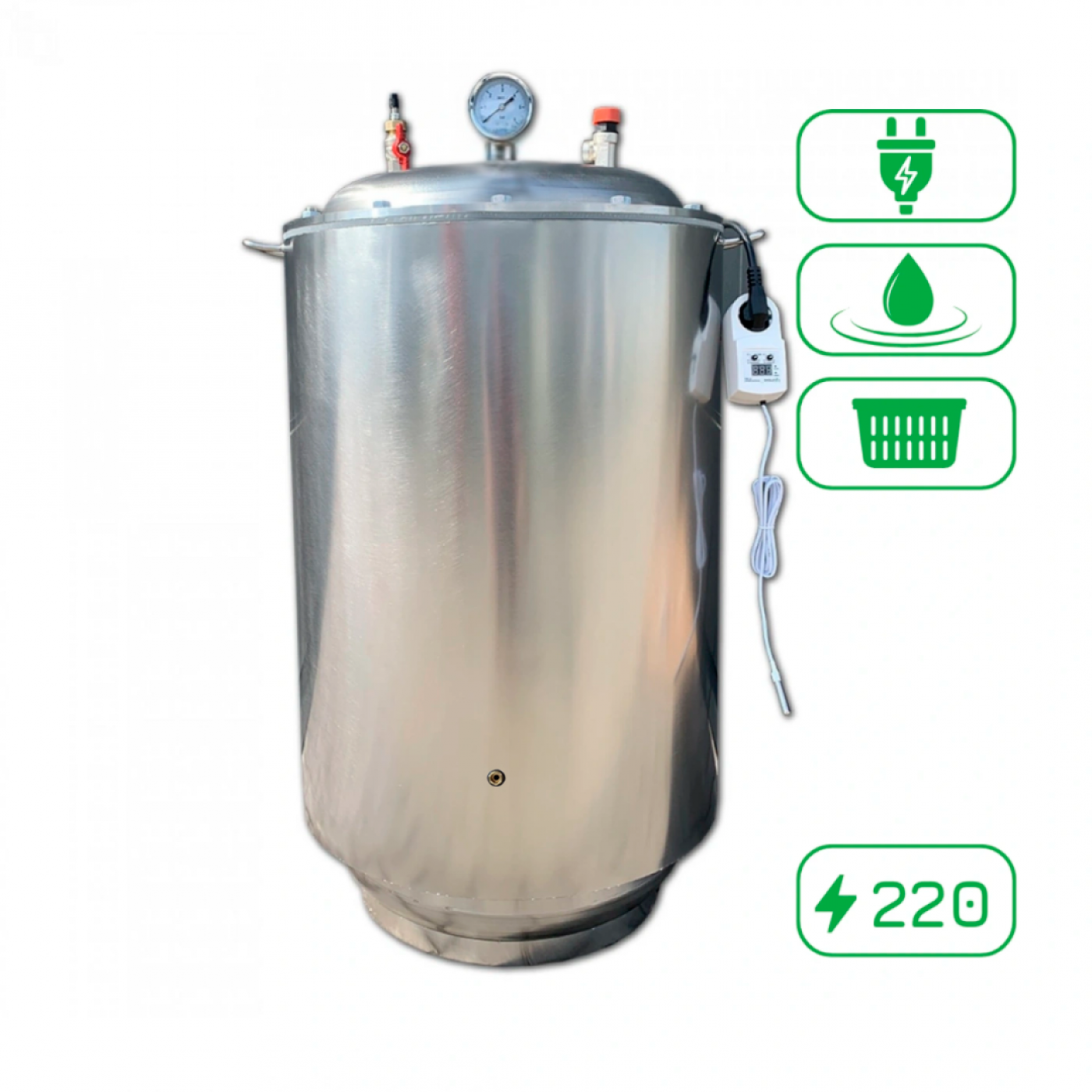 Устали поднимать тяжелый автоклав, чтобы слить воду? Не думайте об этом! Наши автоклавы имеют удобный кран — теперь спускать воду легко и быстро.
