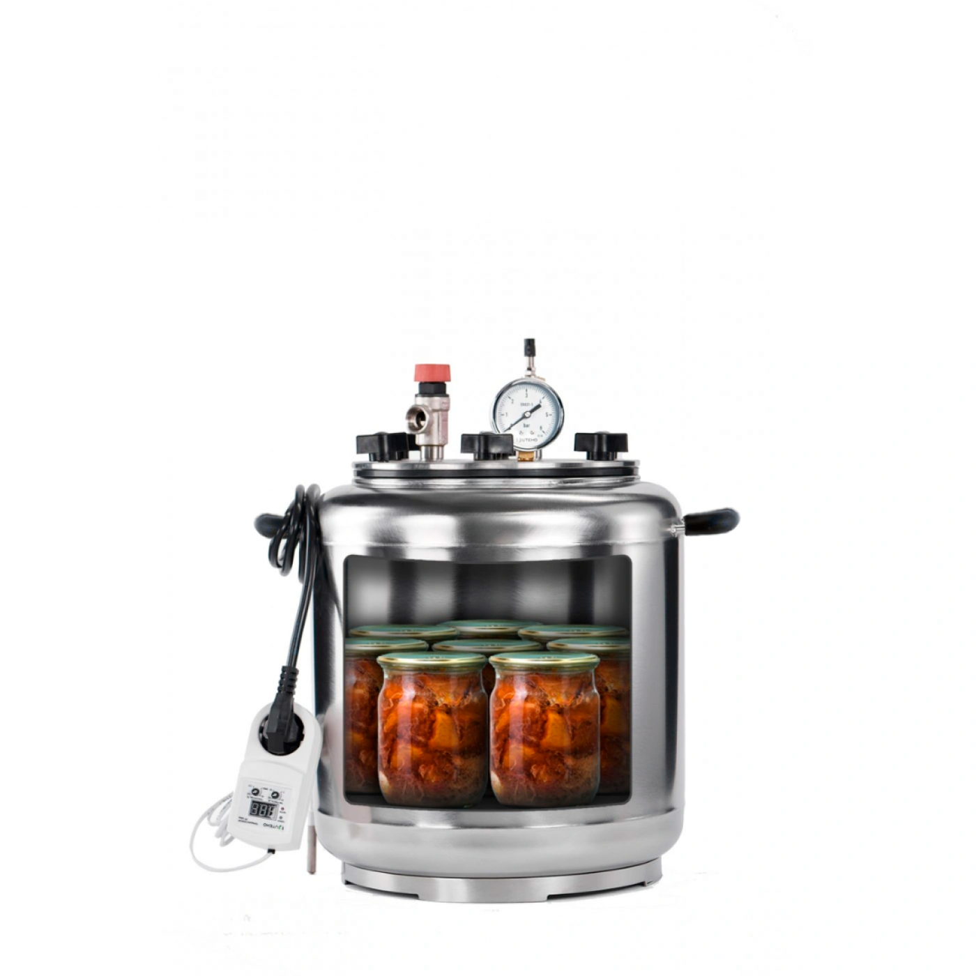 Хочете більше вільного часу та не стояти над консервацією цілий день? Просто виставте час і температуру на блоці керування — і займайтеся власними справами. Електроавтоклав працює автономно, без потреби постійного контролю!